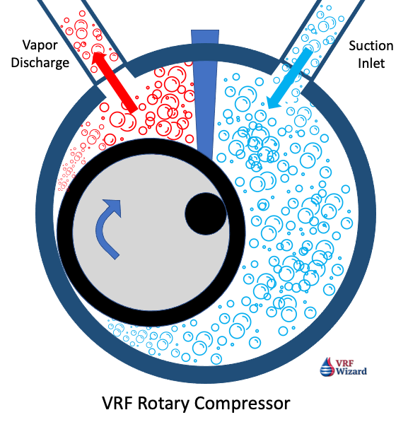 The compressors come in various quantities and types based on the VRF Manufacture and system tonnage. The most used VRF compressor types are the Rotary and Scroll Compressors.