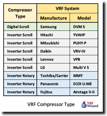 VRF Compressor Type per VRF Manufacture